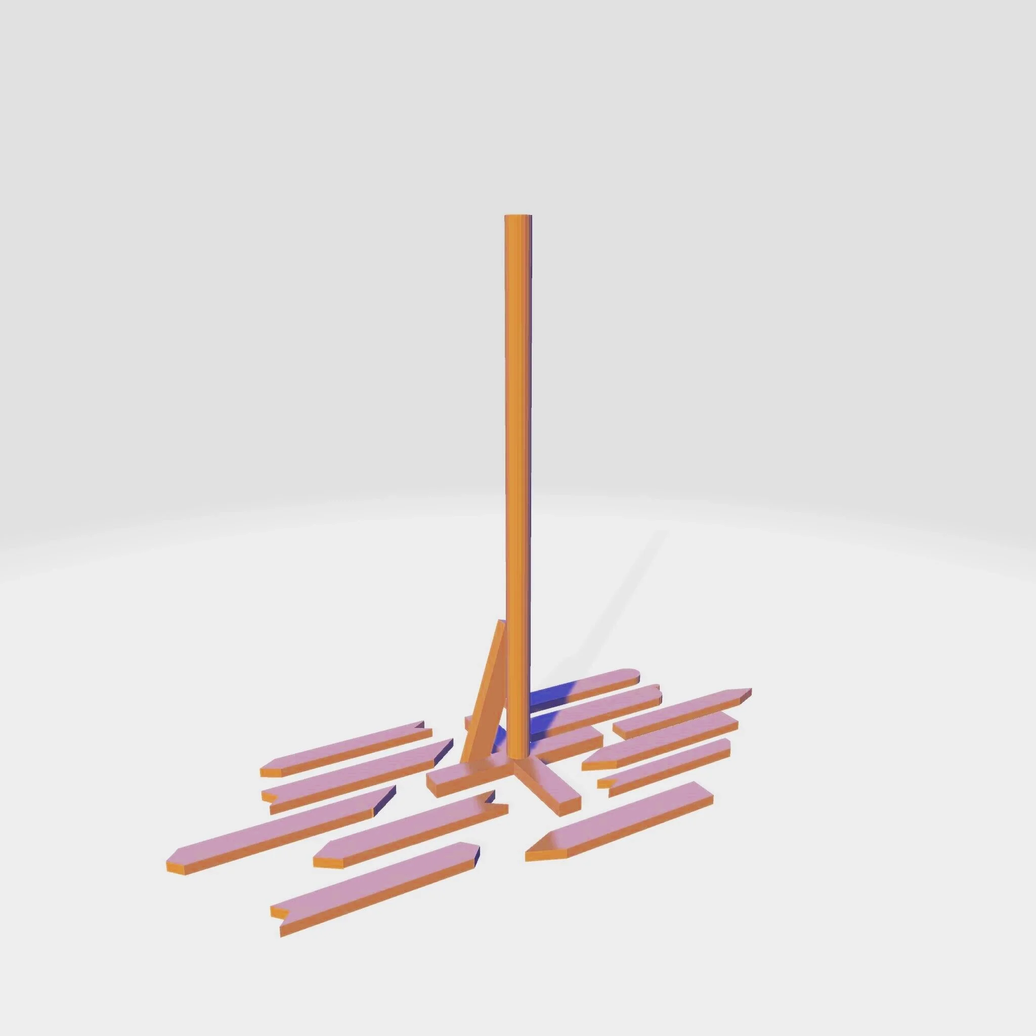 Chairs deconstructed. Left chair is built from the 4 left pieces. Right chair is built from the right two pieces.